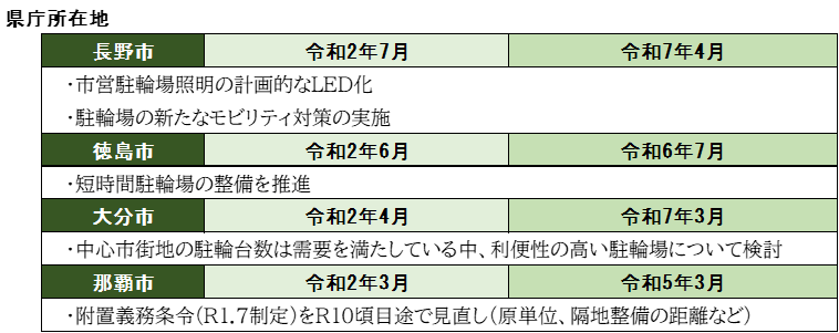 以上のように、計画変更による新たな駐輪ニーズが認められるのは現時点で22自治体ですが、今後1~2年で計画変更の時期を迎える自治体も多く、これら自治体においては、従前の計画には示されていなかった新たな駐輪ニーズが盛り込まれるのではないかと考えます。