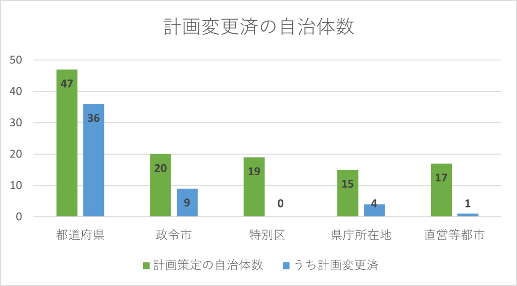 県庁所在地(政令市は除く)においては、4自治体が計画変更しています。